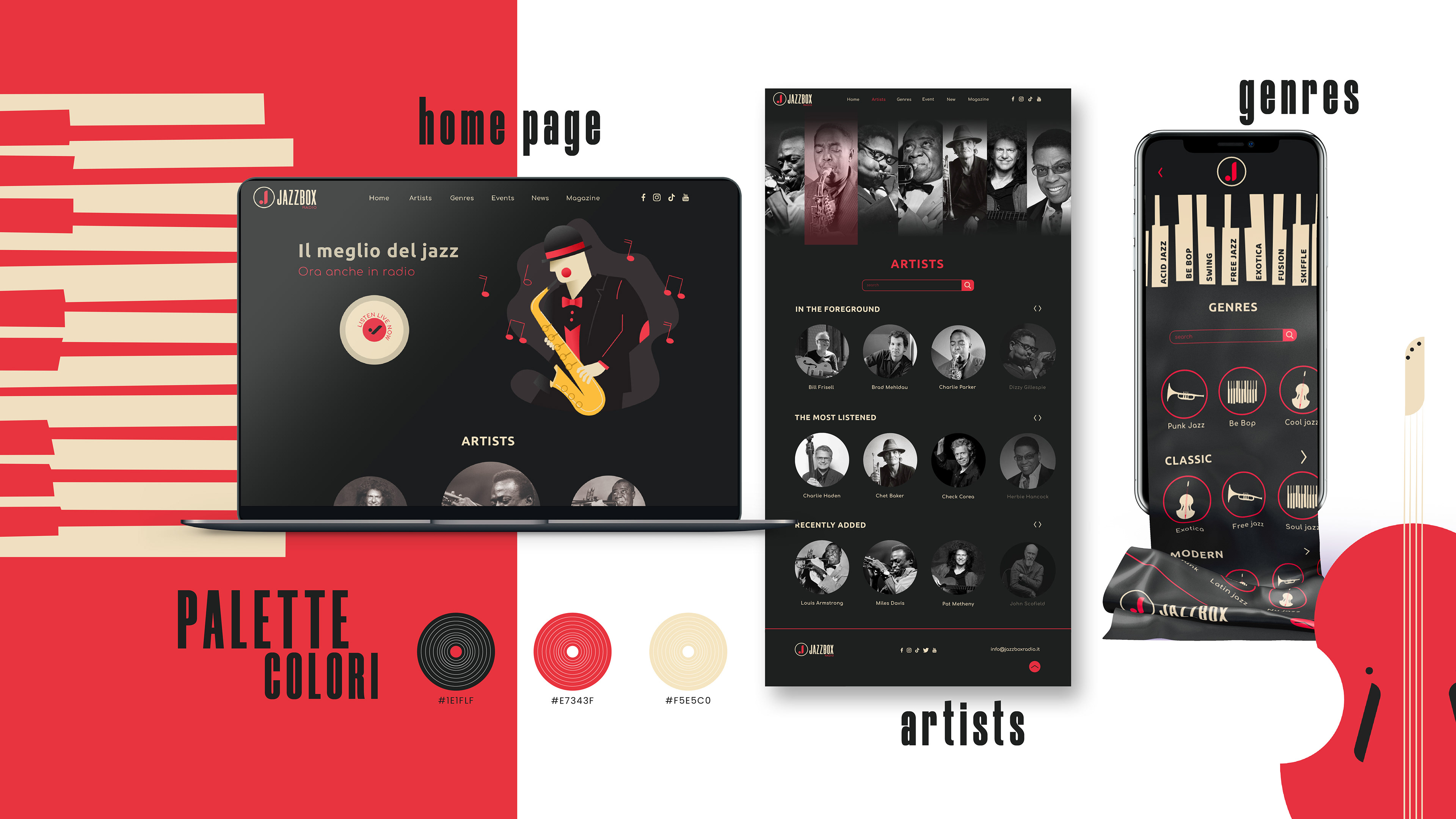 Brand identity e sito web di una radio jazz.